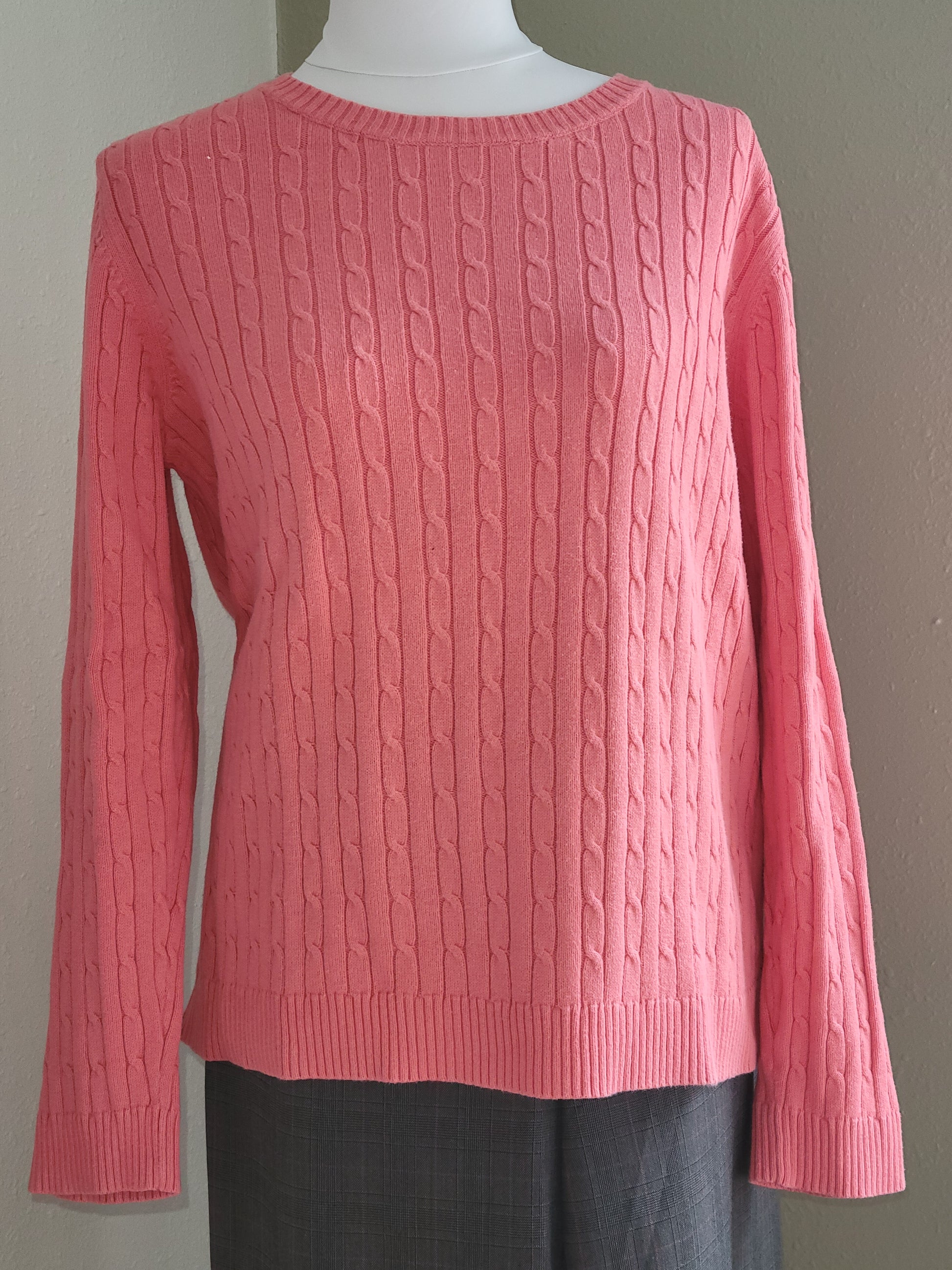 This cheerful apricot (coral-tone) sweater from Croft & Barrow brings classic texture and cozy color together in one easy piece. The mid-weight cable-knit design makes it ideal for layering through fall, winter, and spring—substantial enough for warmth yet light enough for comfort.