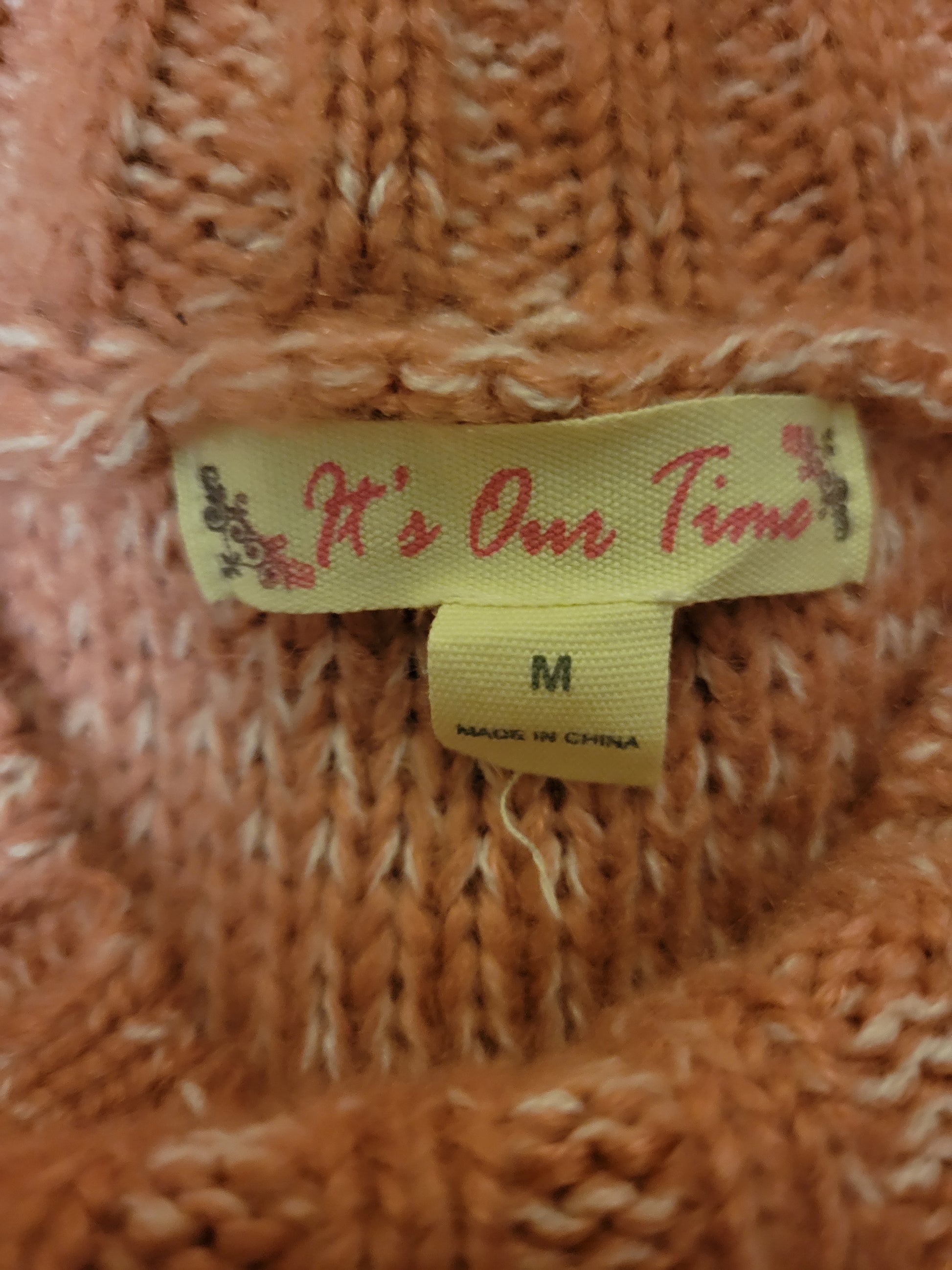 Soft and sweet, this blush cable knit sweater from It’s Our Time wraps you in warmth and understated style. The color—a gentle dusty rose kissed with white marbling—adds texture and depth, creating a cozy yet polished look that’s perfect for the chillier months.