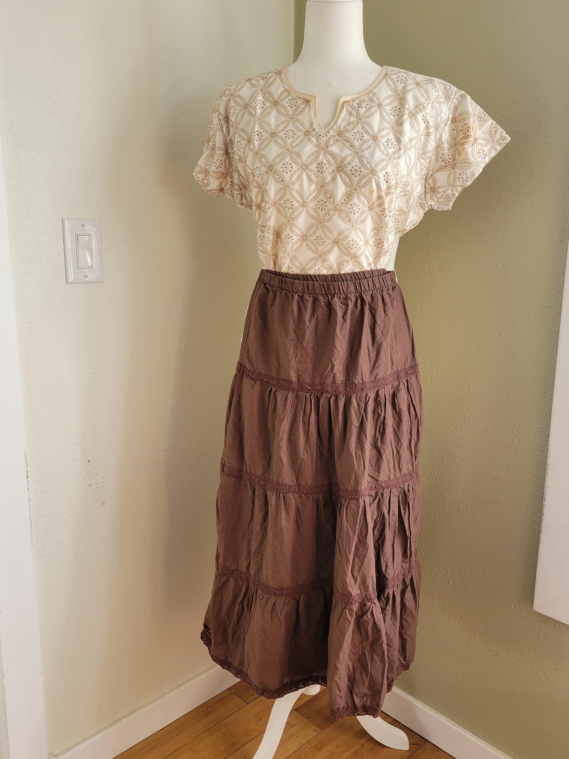 Chocolate Tiered Peasant Skirt