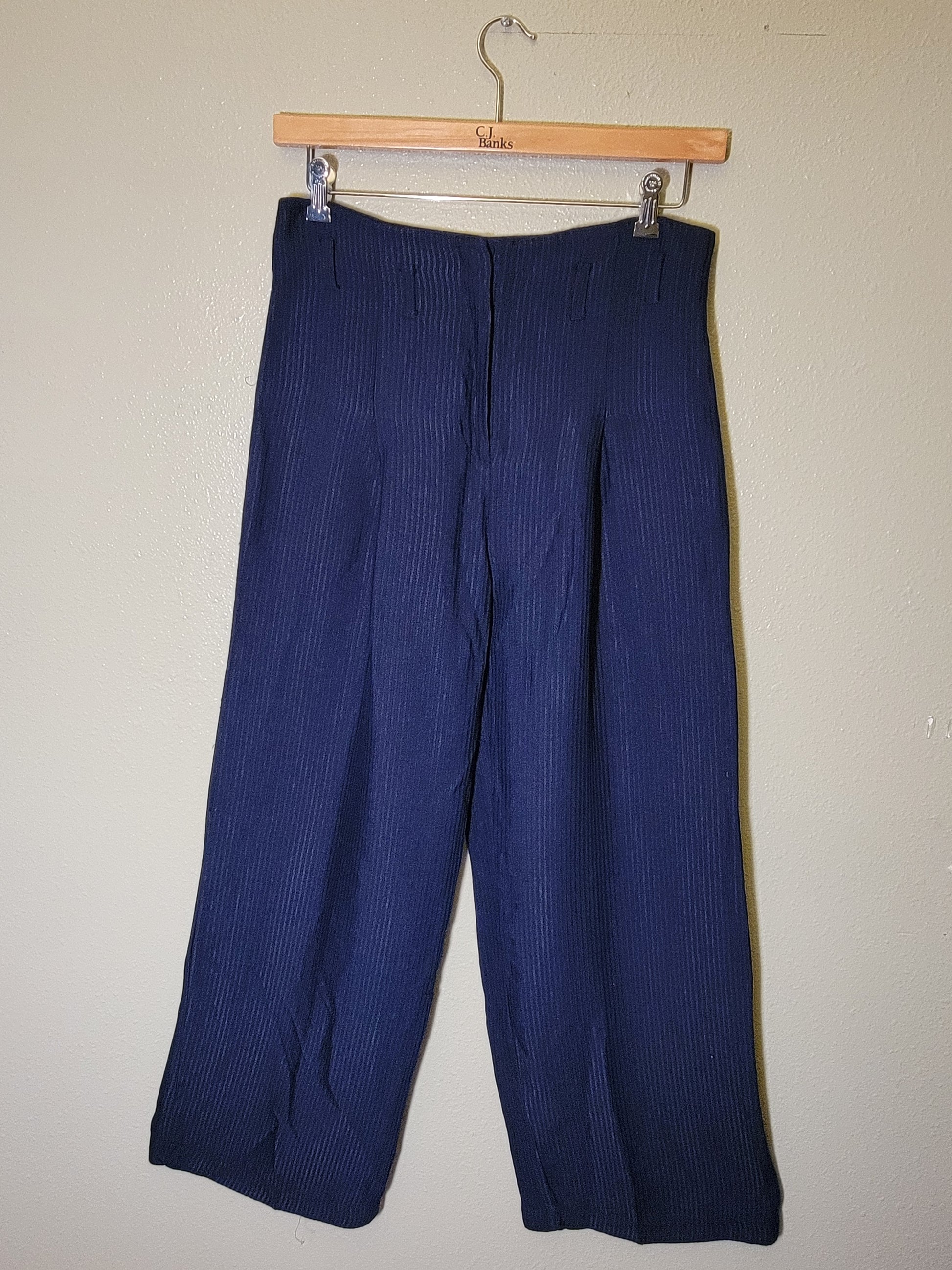 A refined and quietly confident piece, these navy wide-leg trousers from Koton offer effortless polish with a soft, fluid drape. The subtle pinstripe lends elongation and ease, while gentle pleats at the waist create a flattering, tailored silhouette. Designed with belt loops, a clean hook-and-zip closure, and a soft inner button for structure and stability, these trousers bring an elegant sense of movement to every step.